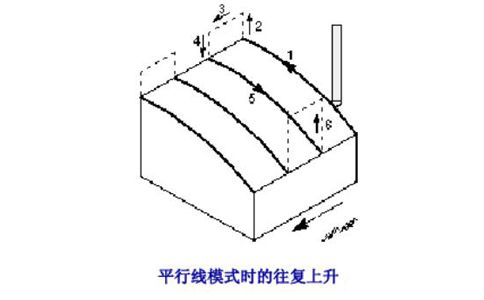 UG编程切削类型中的往复上升允许通过在相反方向切削的方式,从一个切削刀路移刀到下一个切削刀路。和往复相同,数控刀具把反转切削的方向进行连续切削。不过和往复不一样的是,“往复上升”在平行刀路之间退刀、移刀和进刀。“步进”是非切削。