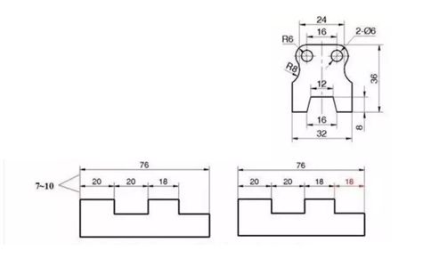 (1)选择两个方向的尺寸基准。对称中心线圆的中心线或长的直线作为基准。
